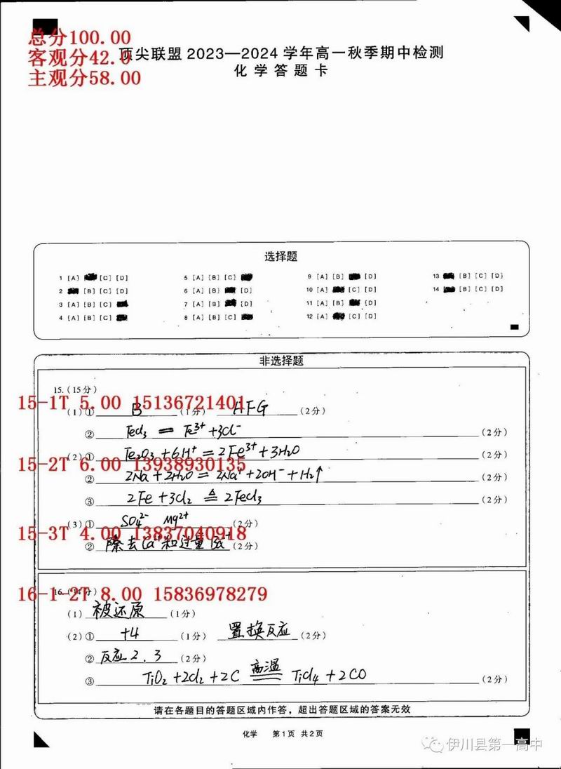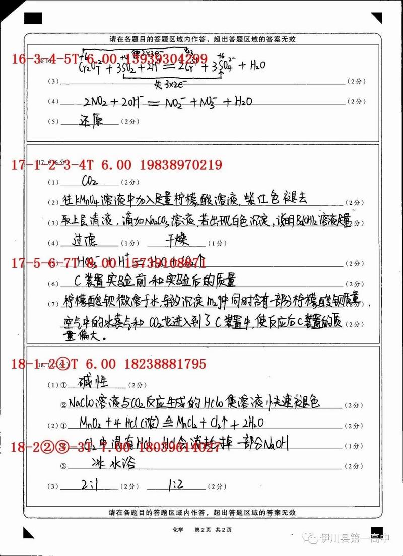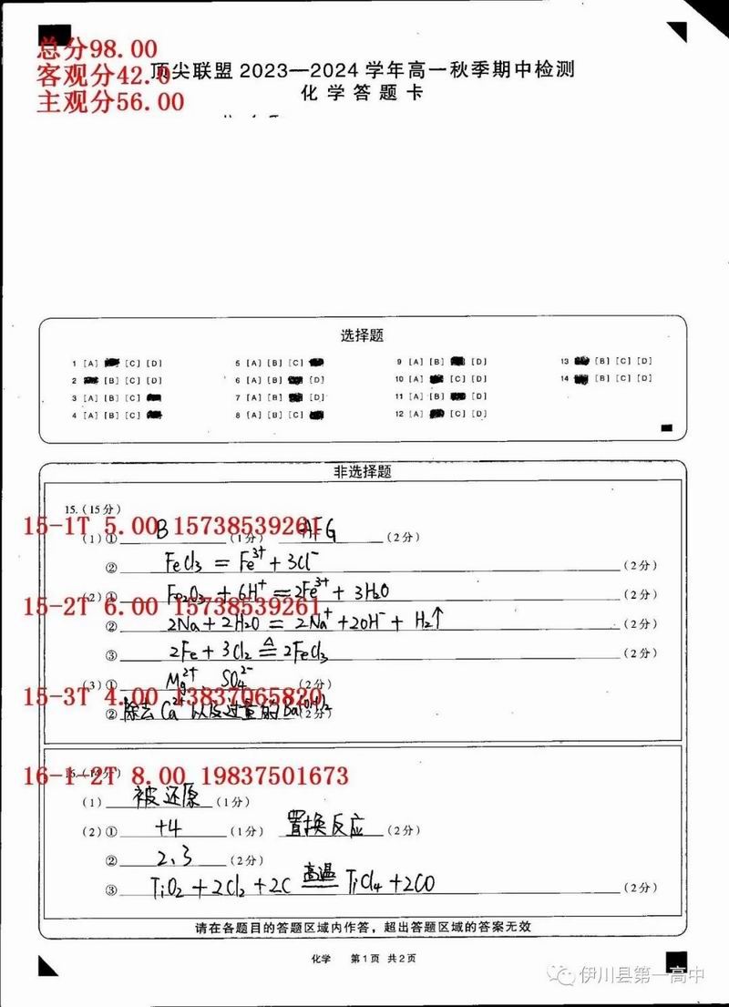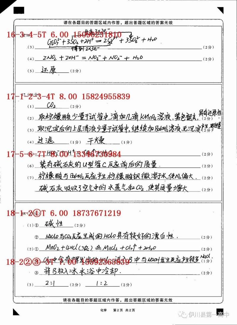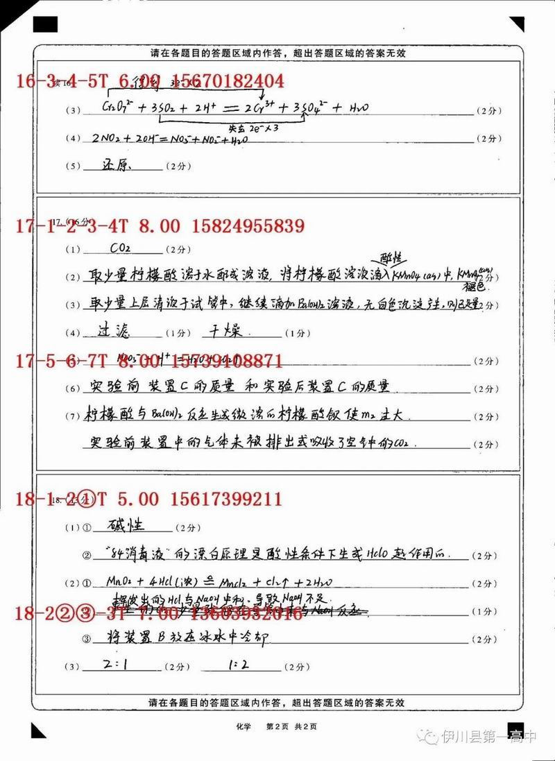 为培养我校学生规范作答的良好习惯,提高优质、高效的试卷书写能力,特选出高一年级优秀答题卡进行展示,以此鼓励全体同学见贤思齐,培养学生良好的规范答题习惯。现将化学优秀答题卡展示如下: