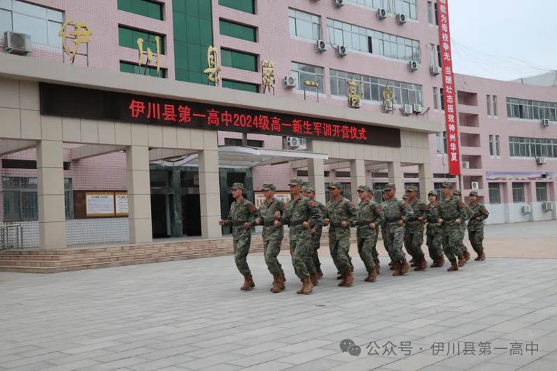 军训,是高中生涯的一个开始,亦是青春与坚持的乐章。仪式最后,由火箭军工程大学蔡教授慷慨激昂地宣布:伊川县第一高中2024级军训开始!